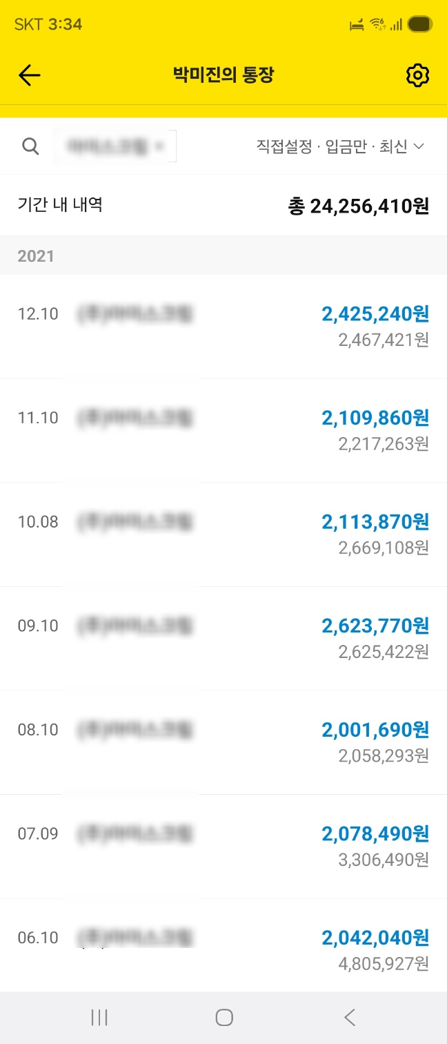 제가 10년간 몸 담은 곳에서 받은 급여입니다.